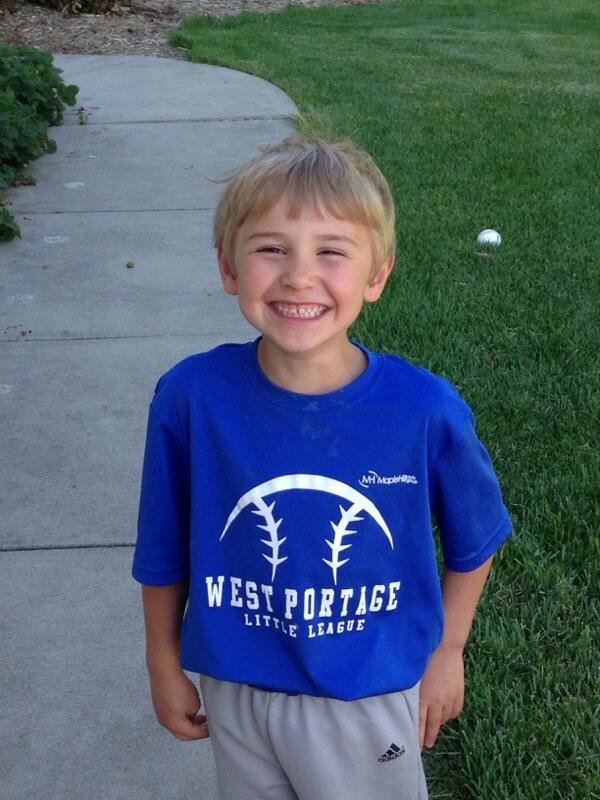 Alex won the Golden Glove for his team tonight. He and Austin were actually co-winners. Alex got on base each time he was at bat. He also made some great stops at pitcher and made good throws to first base. He also got someone out at second base. Grandma and Grandpa were there to watch the game and got to see him win the glove. He was very excited!