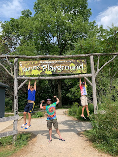 We had a great visit with Uncle Andrew. Even though we didn't see him last summer due to COVID, the boys picked up right where they left off. The week was full of archery, carpet ball, arcade games, and hammock time. We went to the nature center, built a dam in Nature's Playground, had dinner at Bell's, went to Critchlow Alligator Sanctuary, played disc golf and had dinner at Latitude 42. It was a great visit!